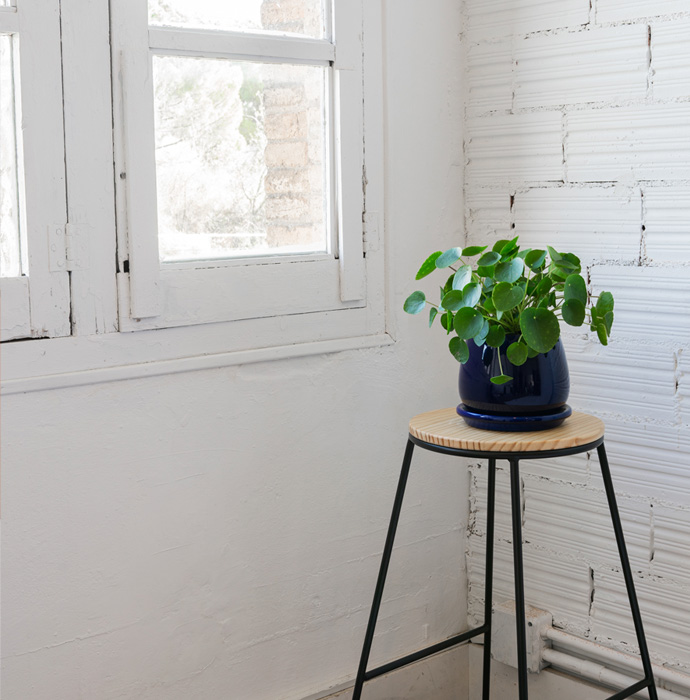 Maceta redonda con esmalte blanco brillante, hecha con molde y en 2 cocciones, primero a 950ºC i después a 1020ºC.Ideal para plantas medianas.Tiene agujero de drenaje en la base para que la planta no se ahogue.
