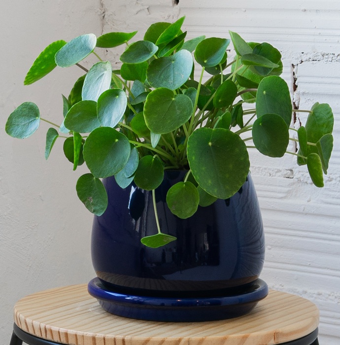 Maceta redonda con esmalte azul marino brillante, hecha con molde y en 2 cocciones, primero a 950ºC i después a 1020ºC. Ideal para plantas medianas.Tiene agujero de drenaje en la base para que la planta no se ahogue.