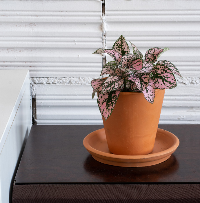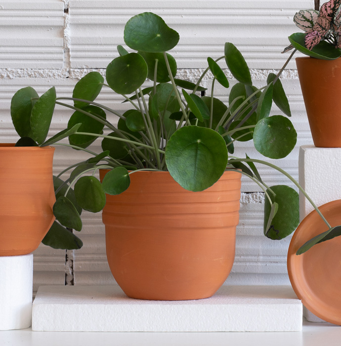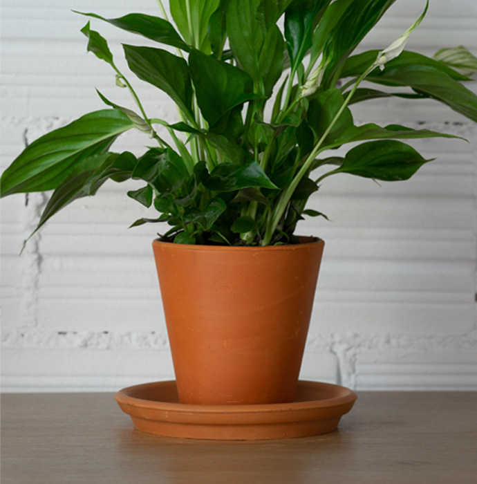 Maceta de terracota fabricada con molde, cocido en una sola cocción a 950ºC.Tiene agujero de drenaje en la base para que la planta no se ahogue.